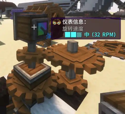 在工业2等模组中使用的是电力(FE),在机械动力中使用旋转力(游戏中称应力)。并且除了旋转力的大小,还考虑了旋转的转速(rotation per minute,RPM)。在原版机械动力的体验中,并没有存储旋转力的电池,所有能源都只能现发现用,这为机器的制造带来了更多变量。